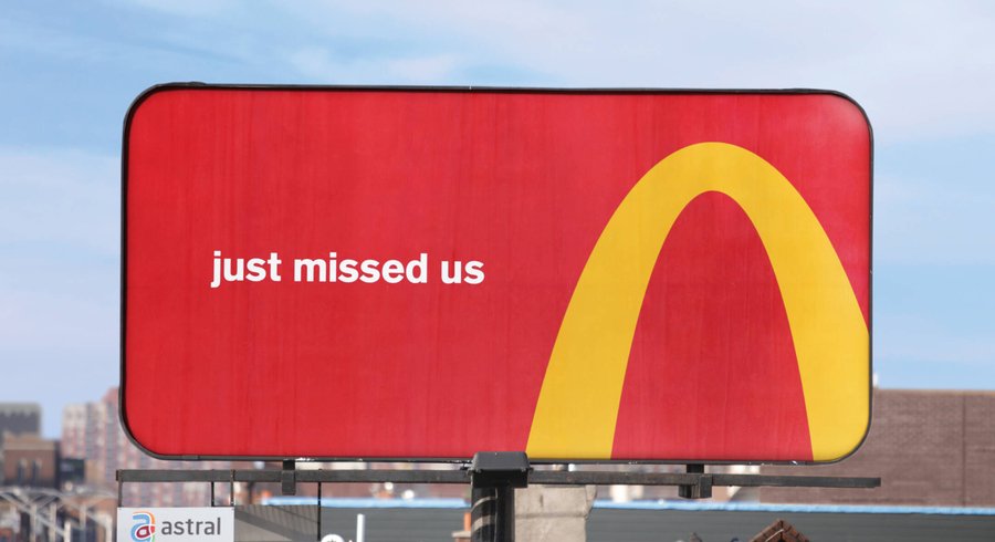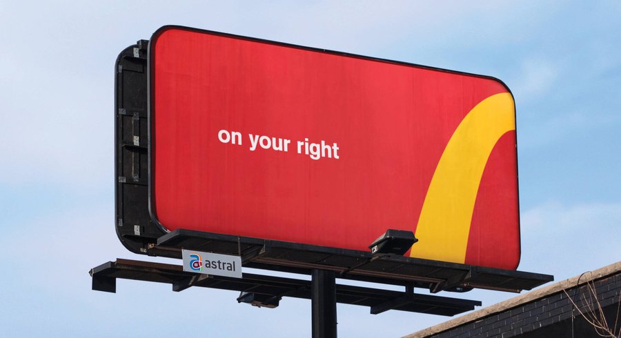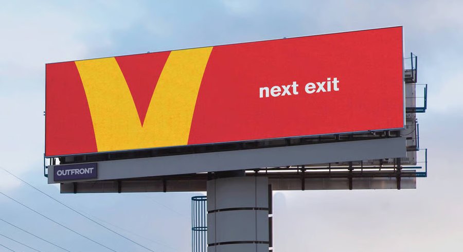 Половинки буквы из логотипа превращается в стрелку, указывающую водителю следующий поворот. Логотип становится частью навигации — прямой визуальной метафорой дороги к бургеру.