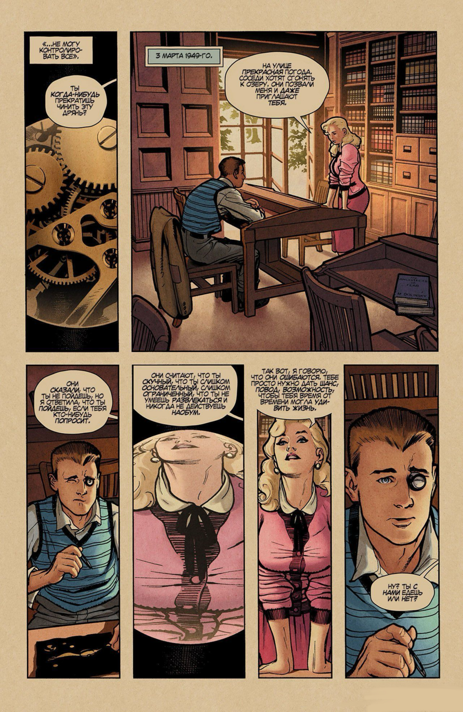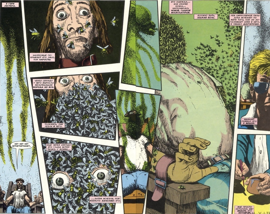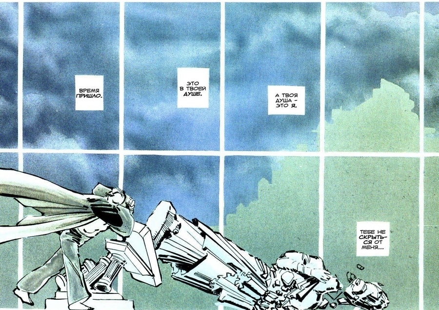 Похожий прием использует Алан Мур в главе о Докторе Манхэттене в Watchmen: нелинейная структура отражает то, как герой воспринимает время, сразу целиком, без деления на «до» и «после». Панели показывают события разных лет вперемешку, и читатель переживает временную дезориентацию, приближаясь к восприятию самого персонажа.