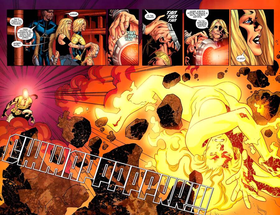 В обоих случаях это нарушение не только разрушает привычную визуальную структуру, но и фактически ломает «четвертую стену» комикса: граница между фикцией и реальностью становится хрупкой, а страница перестает быть безопасным, упорядоченным пространством. Такой прием вызывает у читателя непонимание, напряжение и усиленное внимание, ведь мир, который должен быть закрытым и стабильным, вдруг ведет себя непредсказуемо.