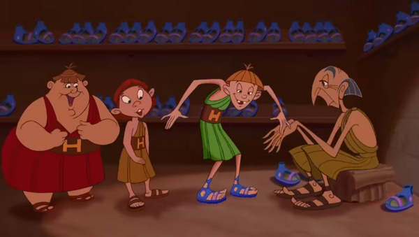 Дизайнеры мультфильма приняли решение адаптировать костюмы с учетом более карикатурного и яркого визуального стиля, который характерен для Disney. Это создало романтический и развлекательный образ древнегреческих персонажей, который скорее подходит для семейного просмотра. В отличие от этого, античные источники в основном характеризуются более серьёзным и реалистичным подходом.