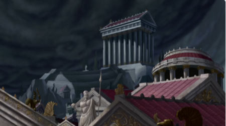 Храм Зевса, куда приходит Геркулес, так же взаимствован из древнегреческой мифологии. Однако в оригинале трон был из золота, а в мультфильме похож на мрамор.