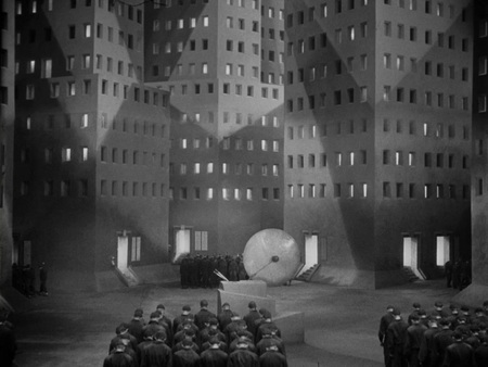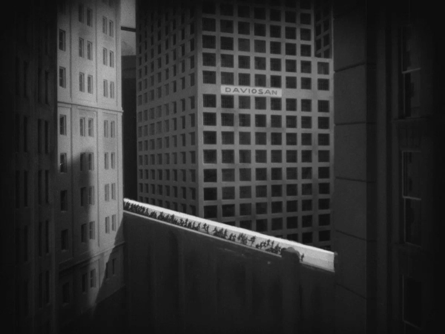 Головокружительная серия гипнотических кадров, которая созданна через сочетание сюрреалистичного монтажа и резких световых контрастов, визуализирует индустриальный хаос. Именно эти находки заложат основу для нуарного изображения города как лабиринта, в котором человек утрачивает индивидуальность.