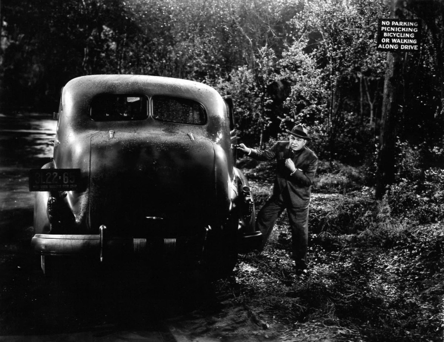 Светотень в нуаре, как демонстрирует «Двойная страховка» Билли Уайлдера (1944), стала инструментом передачи моральной неопределенности, а не потустороннего зла. Композиционные приемы использовались для создания ощущения неустойчивости и скрытой угрозы.