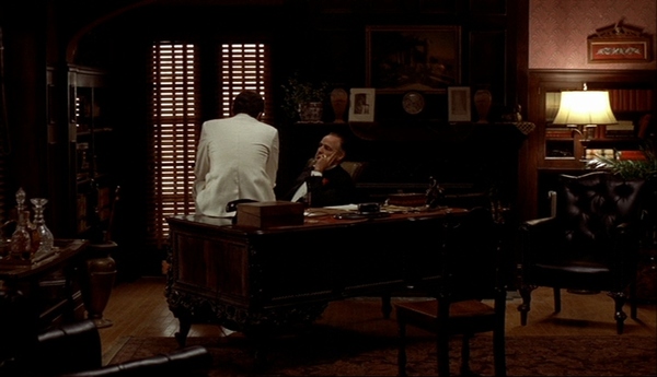 Темы власти, коррупции и морального упадка, характерные для фильмов 40–50-х годов «Touch of Evil», «The Maltese Falcon», «Double Indemnity», прослеживаются и в фильме «The Godfather». Работа со светом и композицией кадра подчёркивает криминальность сюжета: ракурсы сверху, решётчатые окна, минимальное освещение создают напряжение и ощущение угрозы.