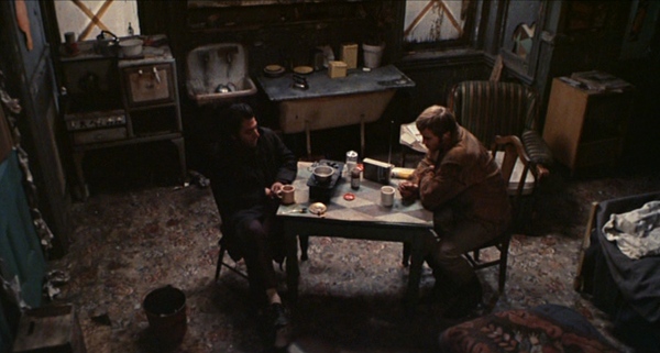 Игра с тенями и геометрией кадра помогает показать неопределённость и внутренние переживания персонажей.
