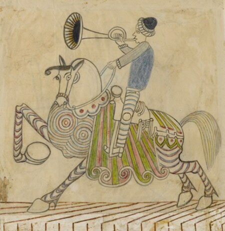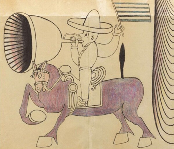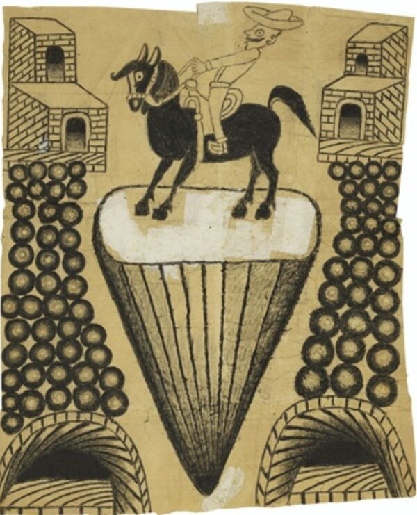 Мартин Рамирес. Мексиканец на лошади фрагмент. 1955