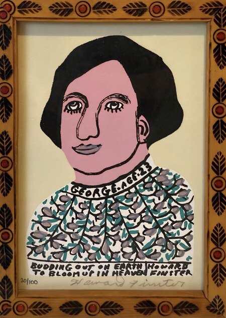 Работы Говарда Финстера напрямую отражают его жизненный путь проповедника и визионера. Изображая человеческие лица, он прибегает к упрощенным, почти иконописным формам: большие симметричные глаза, прямой нос и схематично обозначенные черты. Этот сознательный примитивизм, лишенный академической штриховки и анатомической точности, отсылает к традиции народной религиозной живописи и создает эффект вневременности, словно лики святых или пророков, явившиеся из его видений.
