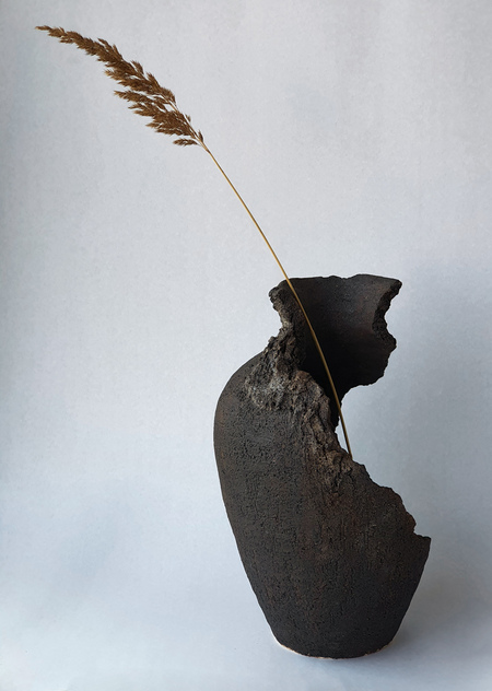 В предмете легко читается первоначальная форма сосуда, но утраченные фрагменты наталкивают на вопросы: «Зачем такой предмет, есть ли у него предназначение или это ненужный кусок чего-либо?». Каждая ваза этой серии создана на грани функциональности, то есть наделить предмет смыслом может только сам человек, поставив в него растение. Без цветка же предмет является лишь обломком.