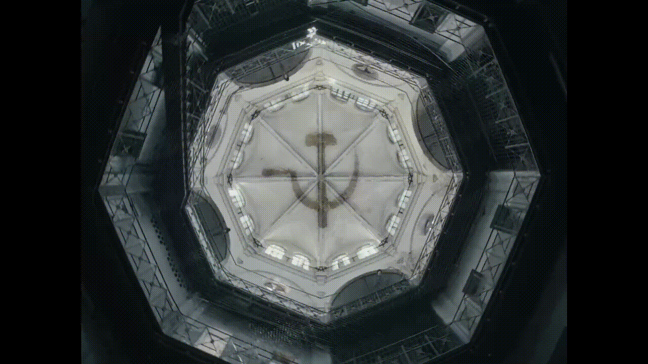 Пространство окончательно поглощает человека: он идёт прямо в пасть монумента.