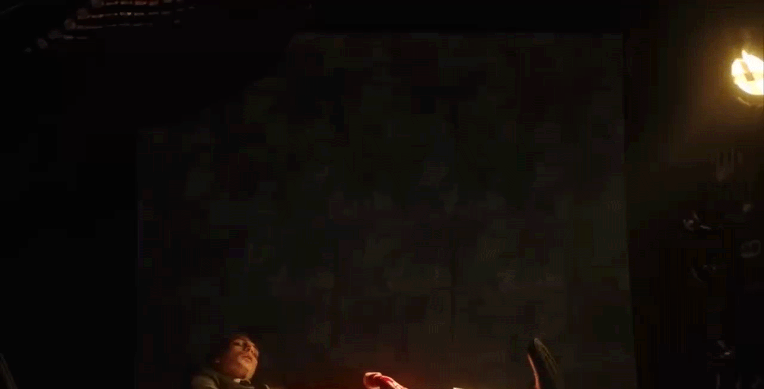 «Могилам II» превращает театр в античную трагедию с хором, но хор безмолвный и в масках. Гримёрка — это закулисье, ванна — основная сцена. Хористы (люди в масках животных и битого стекла) не говорят ни слова, они только двигаются синхронно, поднимают мешки, фотографируют вспышками. Свет включают и выключают, как софиты. Когда вспышки бьют по лицу лежащего, кажется, что это не съёмка клипа, а публичное вскрытие на театральных подмостках.