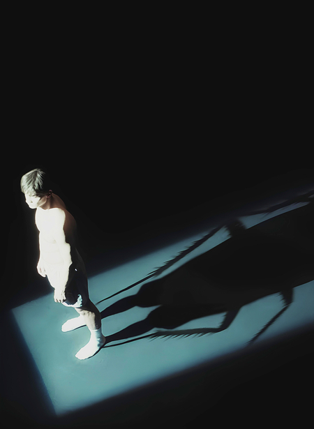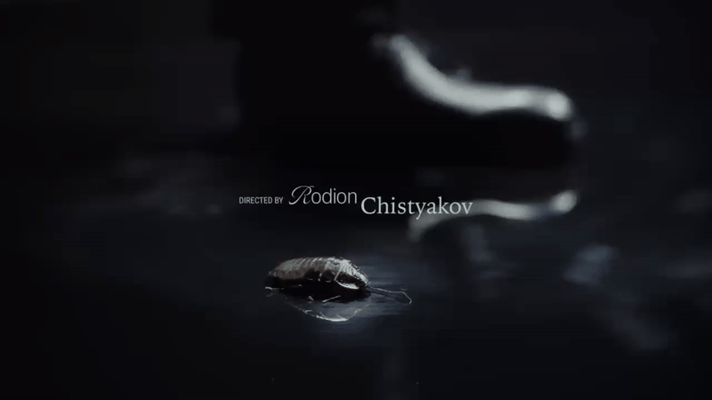 В «Мне стыдно жить» травма тела достигает максимального унижения через превращение человека в насекомое. В первые же секунды актёр держит банку с большим тараканом. Тень человека и тень таракана становятся одним целым. Актёр давит таракана ботинком. Это не просто символ «я чувствую себя насекомым». Это буквальное визуальное утверждение: тело артиста и есть это раздавленное, размазанное по полу существо, которое любой может уничтожить одним движением.