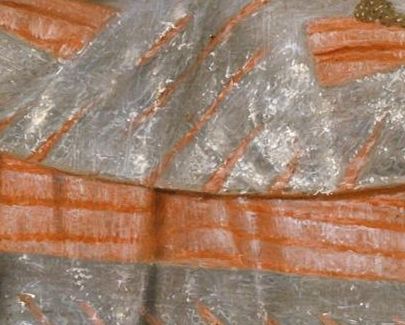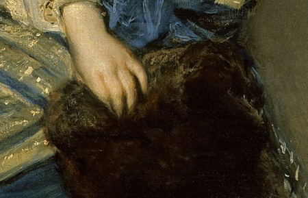 Обратим внимание на детали. В левой руке у инфанты — муфта, правая намечена схематично. Кисти написаны очень светлыми тонами, и на фоне тёмной ткани этот свет особенно заметен. Такой подчеркнутой «чистотой» кожи Веласкес даёт понять: ребёнок далёк от физического труда, перед зрителем представительница высокородной среды.