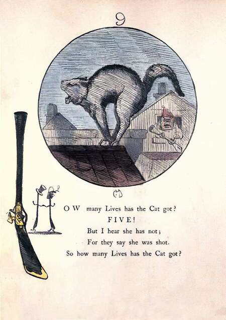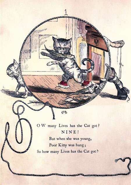 Ещё одна черта, которая приписывалась кошкам как языческим существам, это их бессмертие, породившее представление о 9 кошачьих жизнях. Именно этому представлению посвящена детская книжка «Nine Lives of a Cat» («Девять жизней кошки», США), 1860.