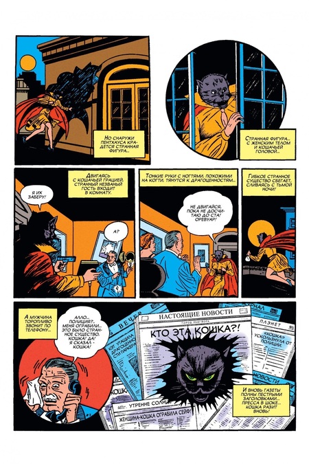 «Бэтмен, заклятый враг преступности, и его юный помощник-сорвиголова Робин, чудо-мальчик, обнаруживают след знакомой фигуры… Красивой и умной женщины, называемой кошкой!.. Женщина-кошка, заигрывающая с опасностью и смертью! Кто победит в этом жестоком состязании между мужчиной и женщиной?» [Цит. по Batman № 3].