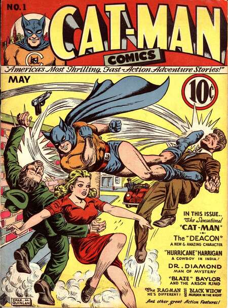 Наряду с Бэтменом в 1940-х начинает публиковаться комикс «Cat-Man» (Кэтмен) или человек-кот. Кэтмен был воспитан семейством тигров, где его наделили «кошачьими» способностями: взбираться на крутые скалы, видеть в темноте, он также обрёл девять кошачьих жизней, чтобы бороться со злом.