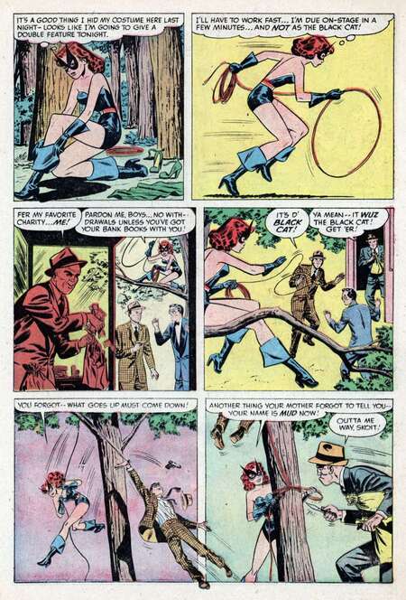 Pocket Comics, обложка «Black cat» № 2, 1949 (слева) Pocket Comics, страница из «Black cat», 1949 (справа)