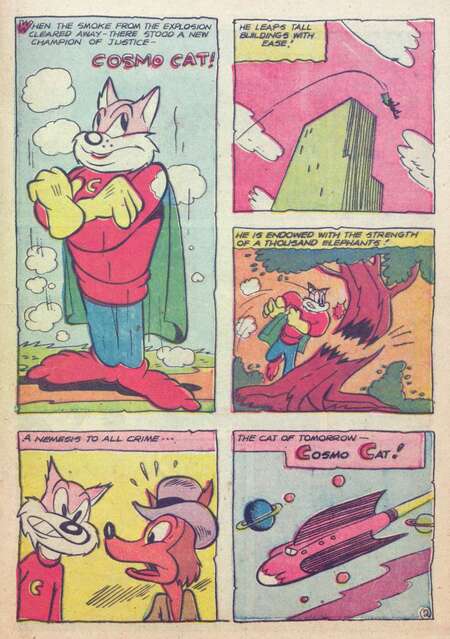 «Cosmo cat» («Космо кэт», «Космический кот»), впервые появляется в «All Top Comics», в 1946 году получает собственную серию комиксов. Согласно легенде Космо кэт работал на заводе по производству боеприпасов и после взрыва одного из снарядов получил свои способность летать и суперсилу.