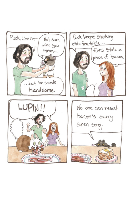 В этой детали выражается не только стремление «очеловечить» животных персонажей комиксов, но и фантазия о том, что кошки на самом деле знают и понимают гораздо больше, чем могут сказать. Это связано также с тем, что кошка в культуре благодаря своему «магическому» образу олицетворяет интуицию и способность видеть скрытые истины.