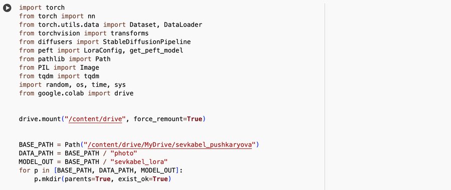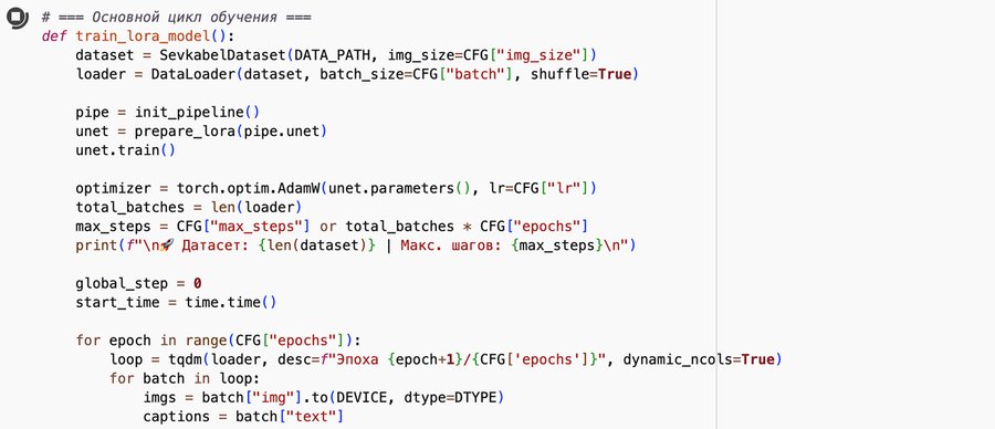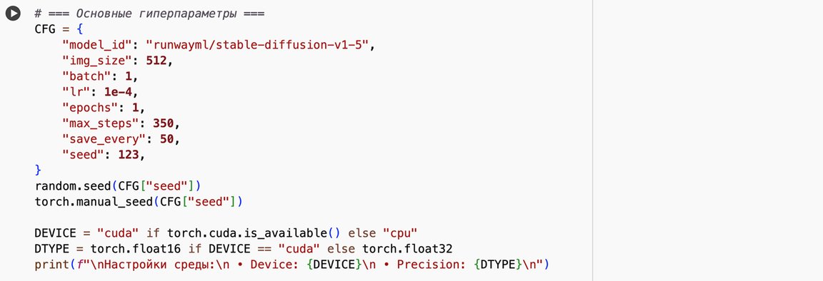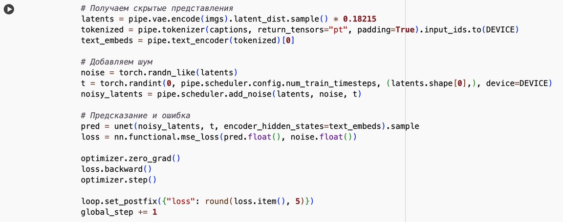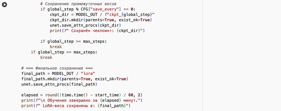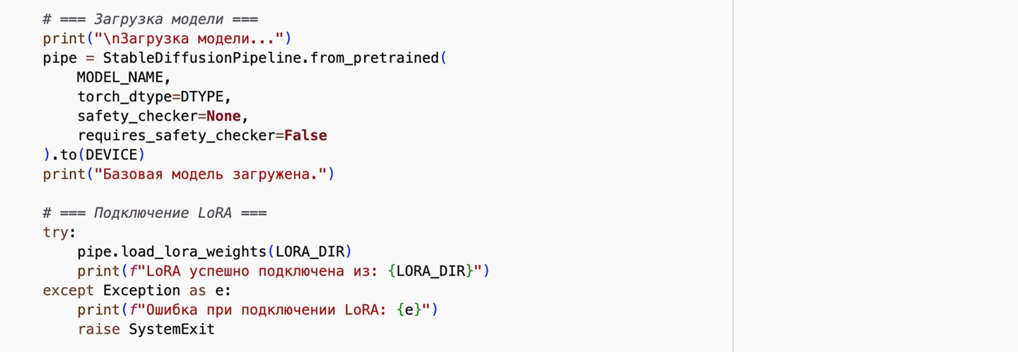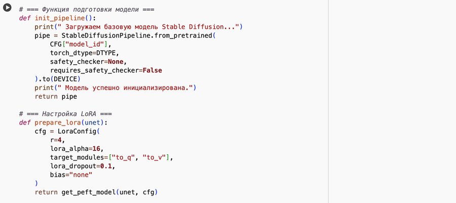 5. загрузка предварительно обученной модели Stable Diffusion, настройка метода LoRA