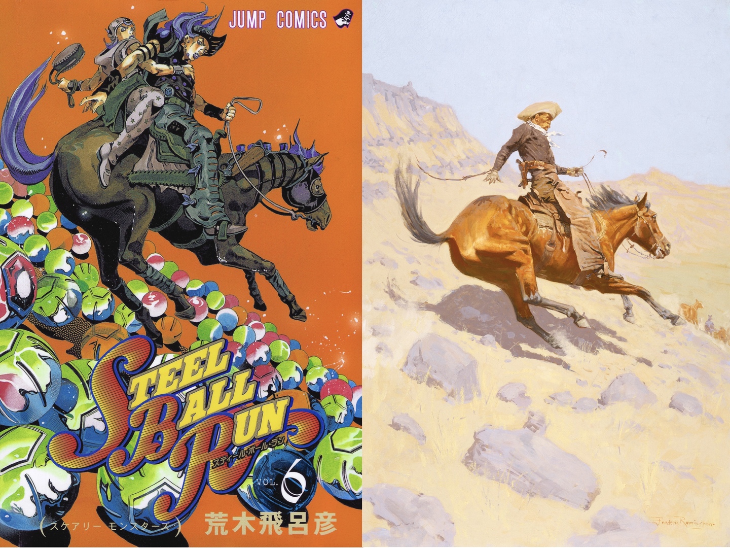 JoJo’s Bizarre Adventure Hirohiko Araki Jump Comics SBR Volume 6 (Cover)2005 and The Cowboy 1902 Frederic Remington