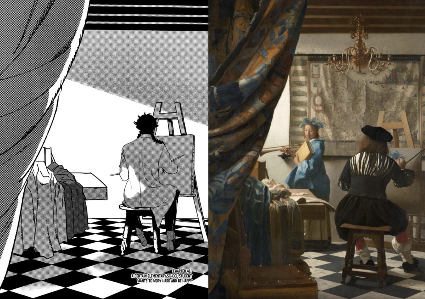 На уровне сюжета такие отсылки работают как усилитель драматизма. Когда в «Невинном» сцена казни строится по композиции Караваджо, а в «Голубом периоде» герой переживает кризис через метафоры Ван Гога, это поднимает личную историю до уровня мифа. Европейское искусство здесь становится языком, на котором говорят о универсальных темах: страдании, любви, смерти, поиске себя. При этом японские авторы часто играют с этими образами иронично — например, превращая возвышенные библейские сюжеты в абсурдные сцены, что создает дополнительный слой смысла.