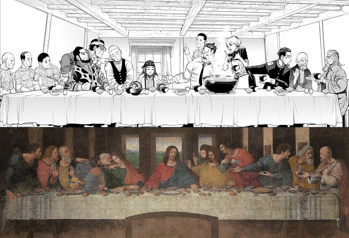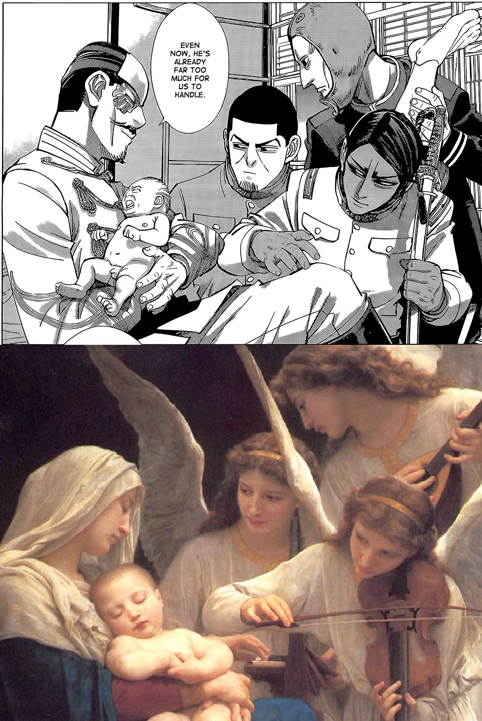 Golden Kamuy by Satoru Noda (2014-2022) and The Last Supper by DaVinci and La Vierge aux anges by William Bouguereau 1881