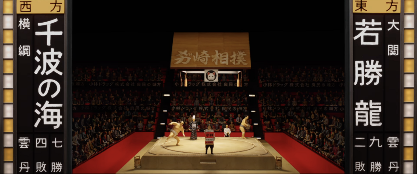 Ричи же почти всегда предстает перед зрителем в бежевом костюме, спортивной повязке и темных очках, как бывший чемпион. Это говорит о том, что он все еще живет прошлым и не желает видеть будущее.