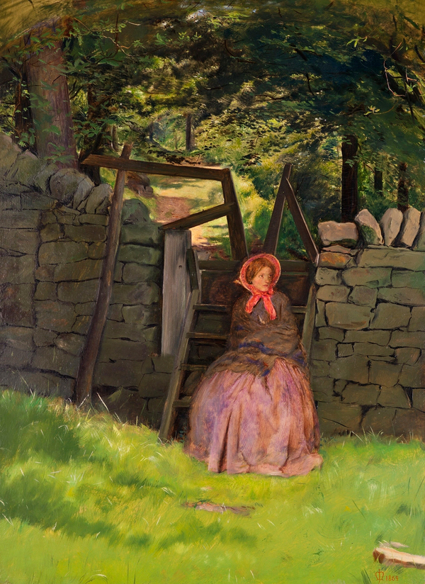 Для сравнения цветовой палитры, рассмотрим картину Милле и работу одного из академистов. Можно заметить, что Милле использует насыщенные цвета, близкие к спектральным, как например, в случае с заполнившей значительную часть картины массой жёлто-зелёного поля. Жёлто-оранжевый и сине-голубой на юбках девушек, будучи комплементарными цветами, вступают в контрастные отношения, за счёт чего они выглядят ещё ярче и заметнее. На картине Рейнольдса, наоборот, все цвета из-за активного смешивания с другими пигментами кажутся приглушёнными. Даже открывающаяся между облаками часть ясного неба имеет пыльно-голубой оттенок.