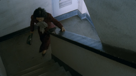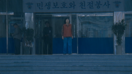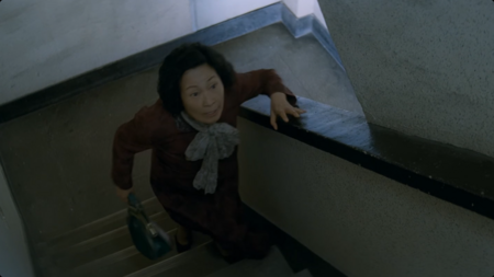 Верх лестницы (государственная система) / низ (ее социальное положение, мир преступления). Режиссер использует лестницы и перемещения в фильме как метафору — мать «опускается» до уровня преступления, чтобы оправдать своего сына, в то время как полиция («верхушка») остается равнодушной. Этот контраст прослеживается в следующих кадрах: сцена в полицейском участке, где женщина спускается вниз по лестнице, униженная и оскорбленная официальными властями и сцена подъема по лестнице к адвокату. Ее перемещения — воплощение отчаянных, одиноких поисков справедливости во время бездействия полиции.
