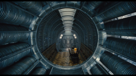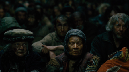 Стерильная, красочная гамма с ярким искусственным освещением головных вагонов / грязные, землистые тона и тусклый свет «хвоста». Контраст разделяет миры угнетателей и угнетенных.