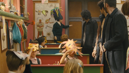 Красная одежда матери / блеклые краски фона, провинциального городка. Режиссер таким образом выделяет личную драму матери на фоне серой и безразличной действительности.