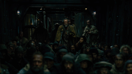 Чистые, свободные и изысканные вагоны «головы» поезда / грязные, тусклые и давящие вагоны «хвоста». Передняя часть поезда представляет собой правящий класс, верхние слои общества, хвост поезда — низшие социальные слои[2]. Переход между ними (насильственный и тяжелый) как карабканье по социальной лестнице.
