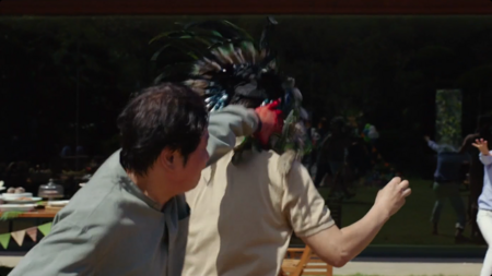 Ким Ки Тэк (отец семейства) из спокойного, пассивного и вечно оправдывающегося человека превращается в убийцу. В финальной сцене после того, как господин Пак с отвращением морщится от «запаха бедняков», Ки Тэк хладнокровно закалывает его[1]. Так, режиссер показывает, как годами копившееся унижение от классового неравенства в один миг перерастает в спонтанный акт насилия.