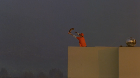 Красная одежда главного героя / блеклые цвета окружающей среды. Когда герой окончательно решается на убийство — он одет в красное. Это предвестник насилия (до содеянного) и демонстрация того, что агрессия наконец вышла наружу (после). Таким образом, контраст показывает, как внутренняя агрессия вырывается наружу через цвет, делая невидимые эмоции зримыми.