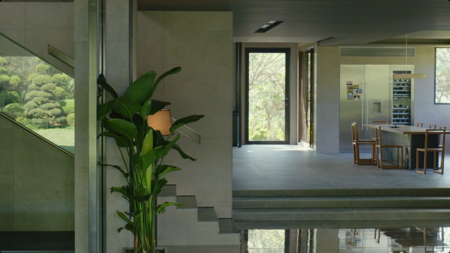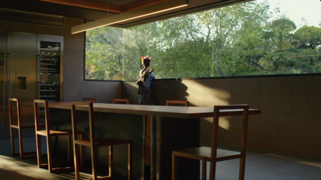 Полуподвал на уровне улицы (дом бедной семьи Ким) / Особняк на холме с панорамными окнами (дом богатой семьи Пак). Визуальный контраст жилой среды напрямую говорит о социальном неравенстве.
