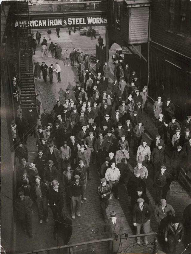 Маргарет Бурк-Уайт. Рабочие уходят со смены в 15.00 на заводе в Питтсбурге. 1936 год. https://cameralabs.org/aeonmedia/zenfoto/9882/63484/margaret-burk-uajt_thumbnail.jpg (дата обращения: 16.11.2025)
