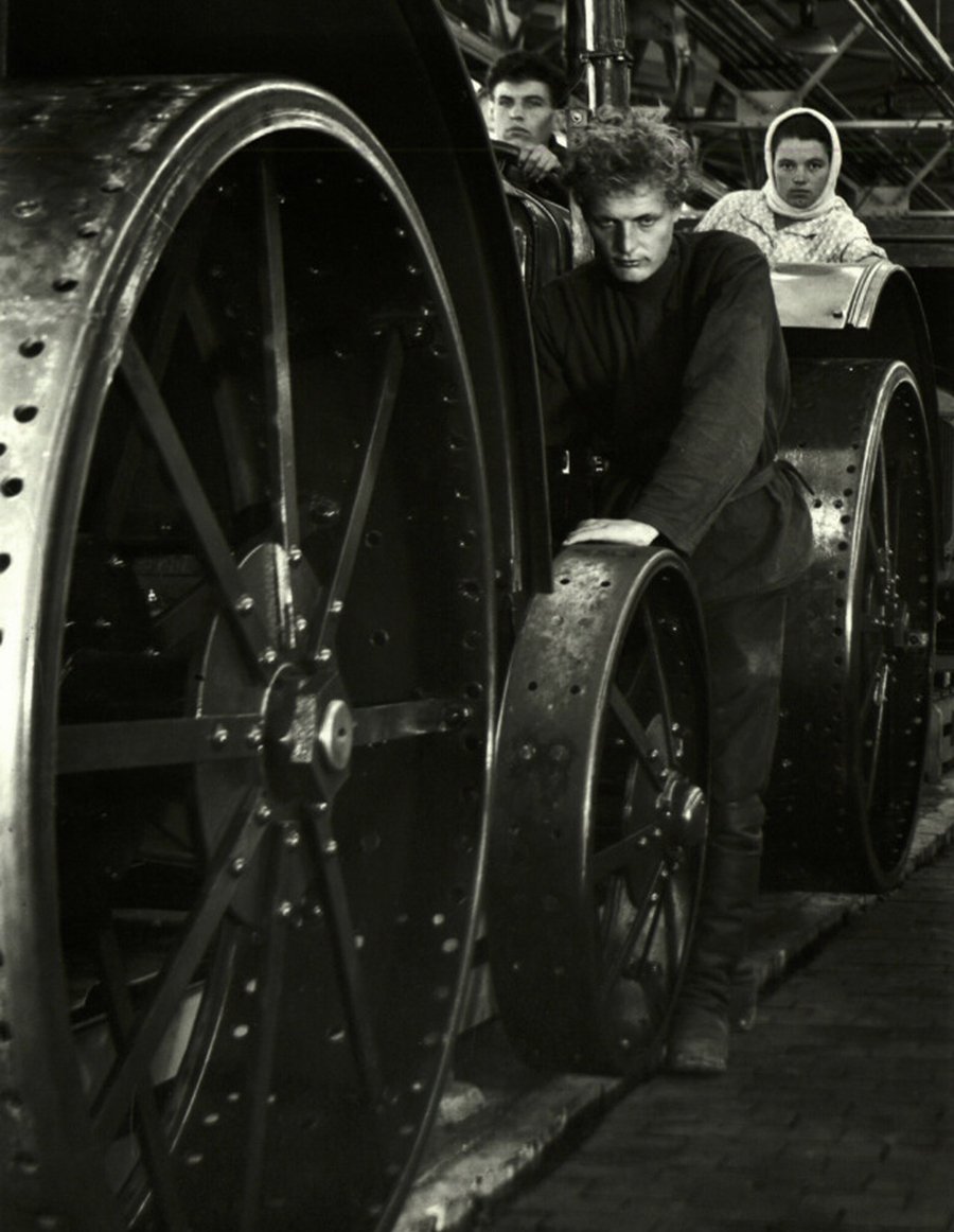 Бурке-Уайт перенимает этот подход: в её заводских сериях свет не просто освещает машину — он «строит» её. Резкие контрасты на стальных трубах, отражения на полированных поверхностях, ритмическое мерцание металла превращают индустриальные объекты в почти абстрактные структуры. Принцип Баухауза о единстве формы и функции проявляется здесь напрямую: фабрика воспринимается не только как место работы, но и как визуальный образ нового индустриального мира.