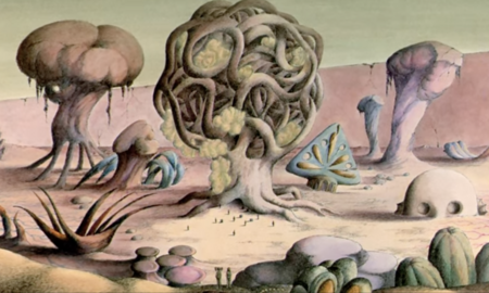 В это время появляется «Дикая планета» Рене Лалу — анимационный фильм, визуальный язык которого создавал художник Роланд Топор. Он рисует мир, который выглядит одновременно чужим, холодным и притягательным. Все существа, растения, предметы там живут по каким-то своим странным, нелогичным, но цельным правилам. Странные формы, вытянутые тела, непонятные пропорции, движущиеся детали, которые не объясняются привычной биологией. Эта среда давит на зрителя и создаёт ощущение чуждости.