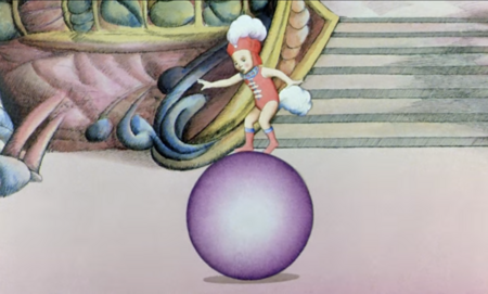 У Лалу и Топора композиция тоже работает с масштабом и давлением пространства, но по-другому. Композиция фильма часто строится на движении: нет статичных равномерных сцен. Техника анимации, подразумевающая вырезание объектов и их ручное передвижение усиливает ощущение непредсказуемости, чуждости, «рваности»