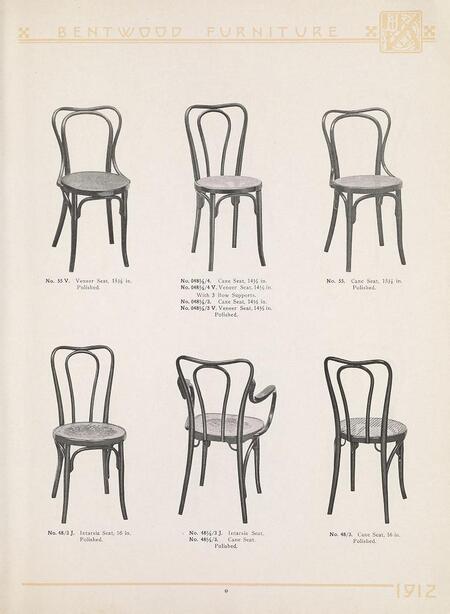 «Венские изгибы» быстро стали языком целой индустрии. Помимо Gebrüder Thonet, гнутую мебель производили Jacob & Josef Kohn, Fischel, Mundus; их каталоги начала XX века демонстрируют вариации опорного кольца под сиденьем, профилей спинок, высот и радиусов.