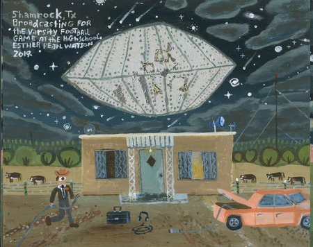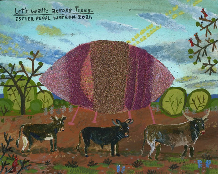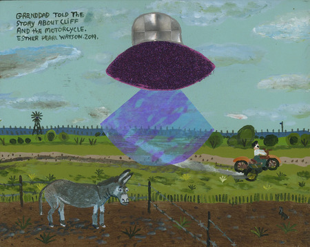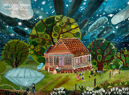 Эстер Пёрл Уотсон является яркой представительницей художников, на творчество которых повлияла деятельность родителей, а точнее — навязчивое желание отца. У отца Эстер Пёрл Уотсон была необычная мечта — построить работающую летающую тарелку, над которой он долго трудился на заднем дворе дома. Такое неординарное видение мира одного из родителей, безусловно, оказывает влияние на ребёнка. С помощью дневников, которые художница вела в детстве, она освежала юношеские воспоминания и обращалась к важным темам, например, к проблемам экономического характера в Техасе.