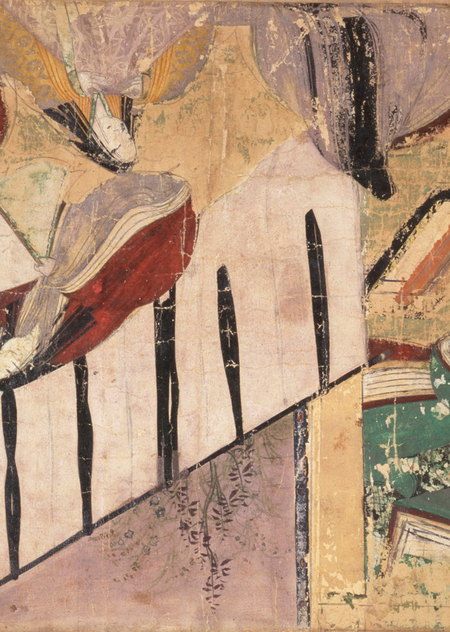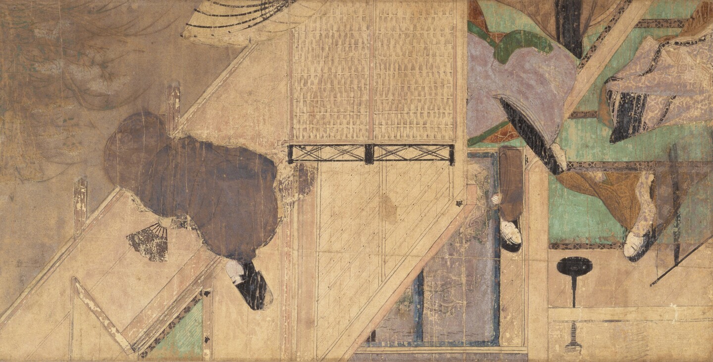 Перепад «сцена — пустота — сцена» работает как монтаж дыхания. Сумиёси Моногатари Эмаки (住吉物語絵巻) — это эмакимоно или эмаки (расписной повествовательный свиток) периода Камакурав истории Японии (1185–1333). Произведение классифицируется как важное культурное достояние и хранится в Токийском национальном музее, но в XIX веке были отделены четыре его части.[6]