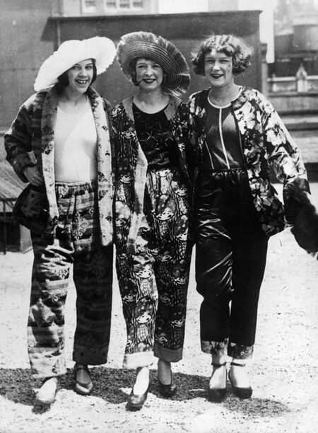 «В 1930-х годах этот стиль распространился дальше и его можно было увидеть на пляжах Британии, однако брюки для женщин оставались своего рода табу за пределами непринужденного пляжного дресс-кода или домашней обстановки вплоть до конца века»