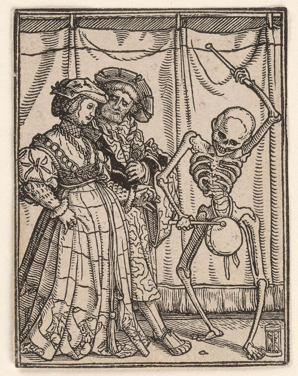 Позже, в 1520-е гг., Ганс Гольбейн Младший в Базеле создал самую известную серию гравюр «Танец Смерти». Гольбейн отошёл от традиции танца: в его сценках Смерть чаще внезапно вторгается в жизнь людей, чем приглашает их на хоровод. Но принцип остался тот же — чередой изображены люди разных сословий, и каждого настигает Смерть (играющая на скрипке, ломающая жезл судьи, похищающая невесту и пр.). Благодаря печатной графике пляска смерти пережила Средневековье и оставалась популярной в Европе вплоть до XIX века, меняя формы (гравюры, серии картин, карикатуры), но сохраняя главную идею.