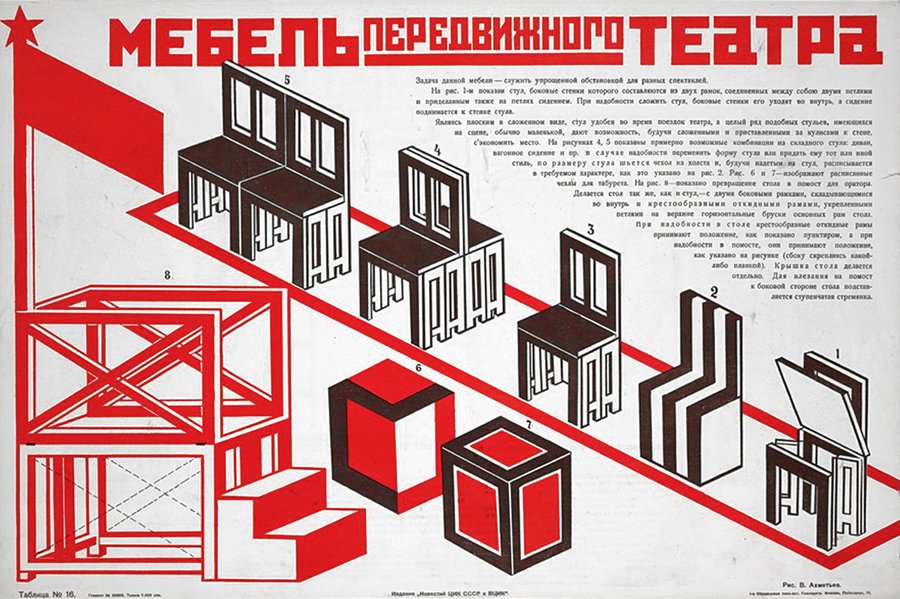 «Художник — организатор быта», гласит одна из статей В.Татлина. Своими проектами члены ВХУТЕМАСа пытались сформировать быт нового советского человека. В отличие от Малевича, они точно знали как этот человек выглядит, из чего ест, на чем сидит и как работает.