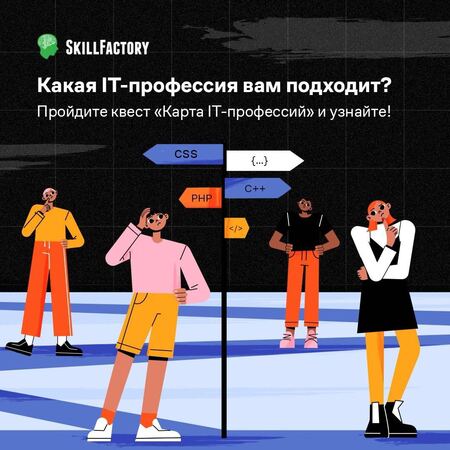 Денотативно: тёмные фоны, контрастная типографика, акцент на профессиях в IT и Data.
