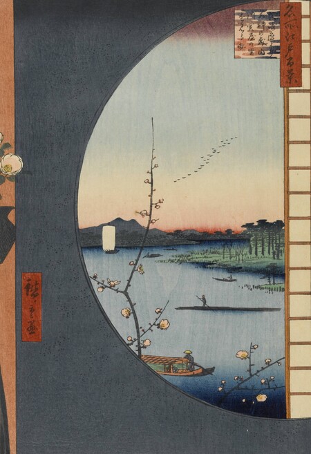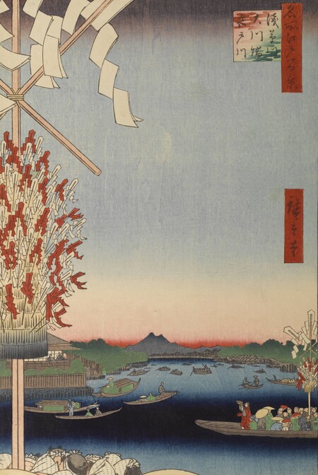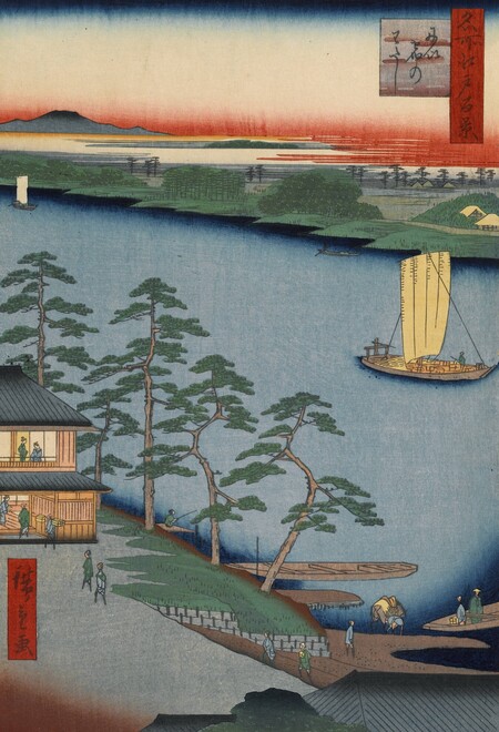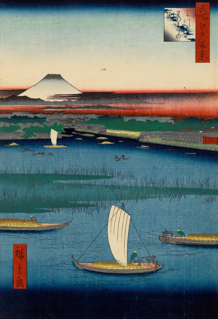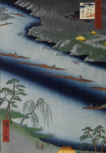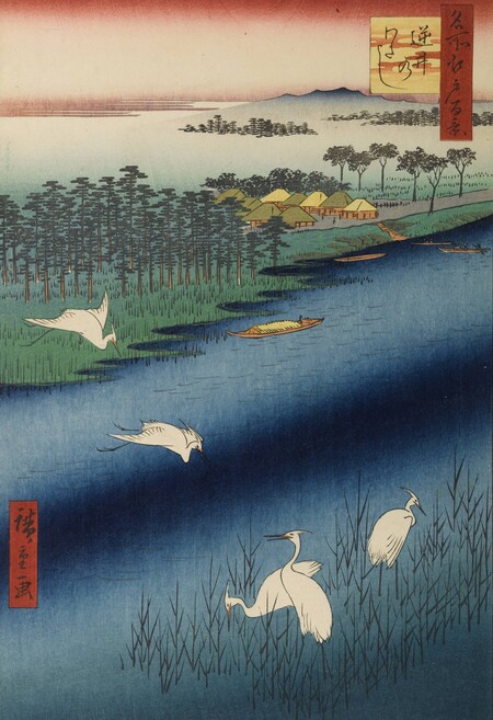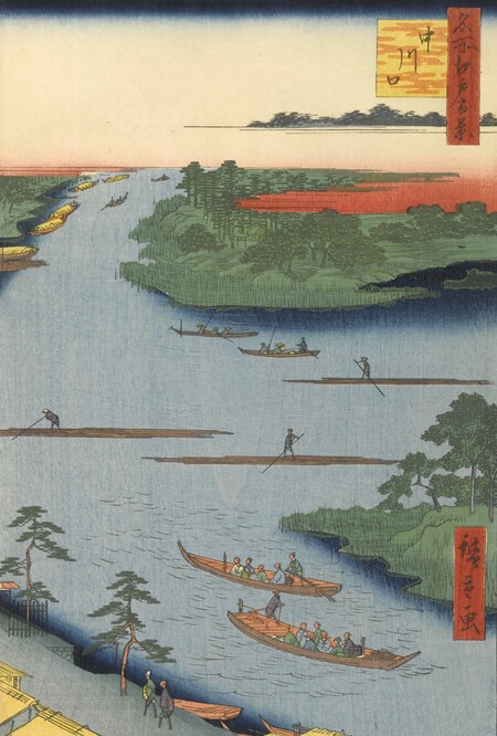 Протоки в Мицумата. Вакарэнофунти. «100 знаменитых видов Эдо». Утагава Хиросигэ; Переправа Сакасаи. Серия «100 знаменитых видов Эдо». Утагава Хиросигэ.