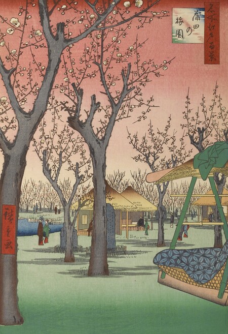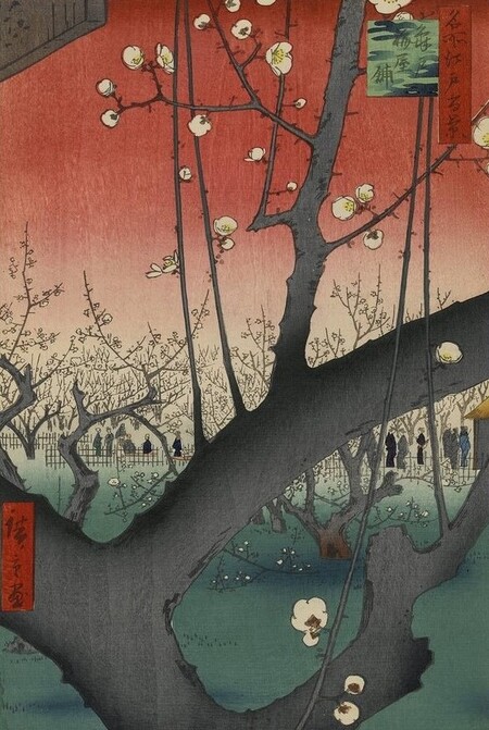 Сливовый сад в Камэйдо. Серия «100 знаменитых видов Эдо». Утагава Хиросигэ; Сливовый сад в Камата. Серия «100 знаменитых видов Эдо». Утагава Хиросигэ.
