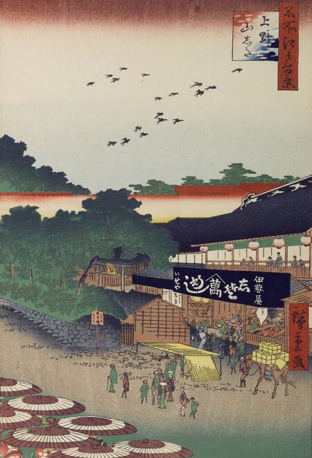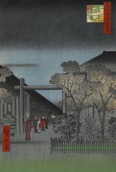 Суругате. «100 знаменитых видов Эдо». Утагава Хиросигэ; Местность Ямасита в Уэно. Серия «100 знаменитых видов Эдо». Утагава Хиросигэ.