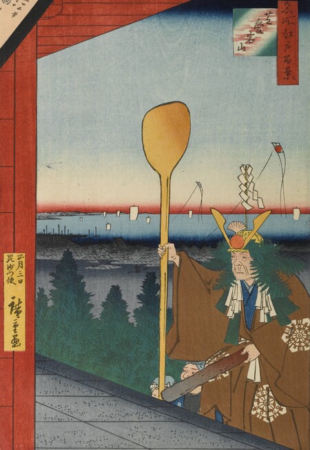 Селения Микавасима, Канасуги и Минова. «100 знаменитых видов Эдо». Утагава Хиросигэ; Фестиваль Ториномати на рисовых полях Асакуса. Серия «100 знаменитых видов Эдо». Утагава Хиросигэ.